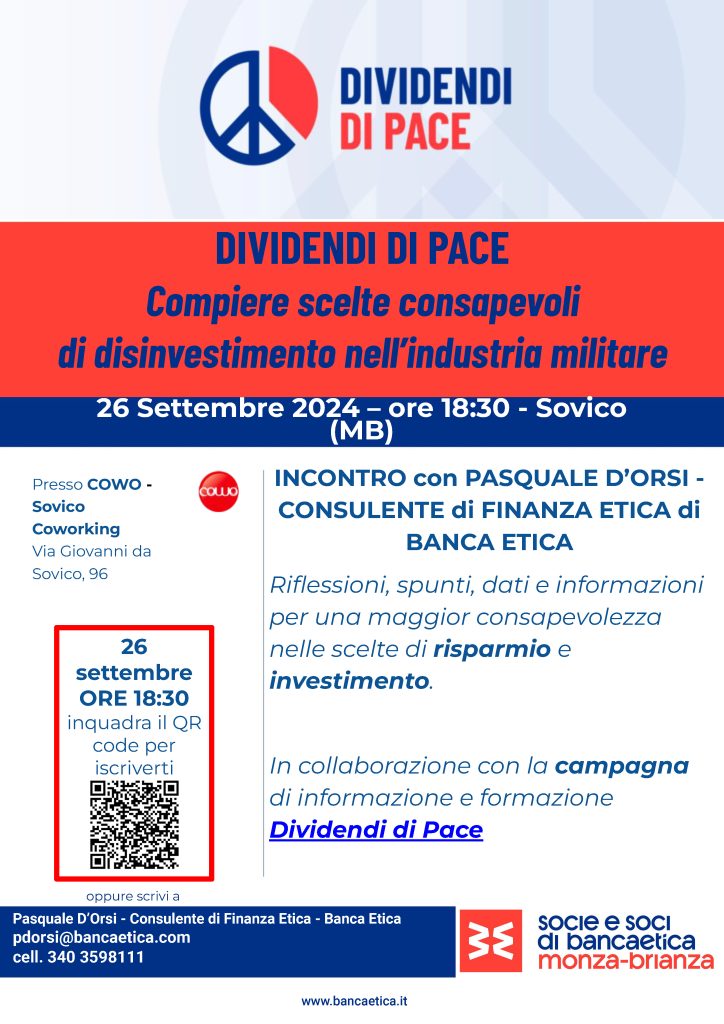 Questo evento è organizzato in collaborazione con la campagna di informazione e formazione “Dividendi di Pace“, un’iniziativa volta a promuovere una cultura di pace e responsabilità attraverso scelte economiche consapevoli.